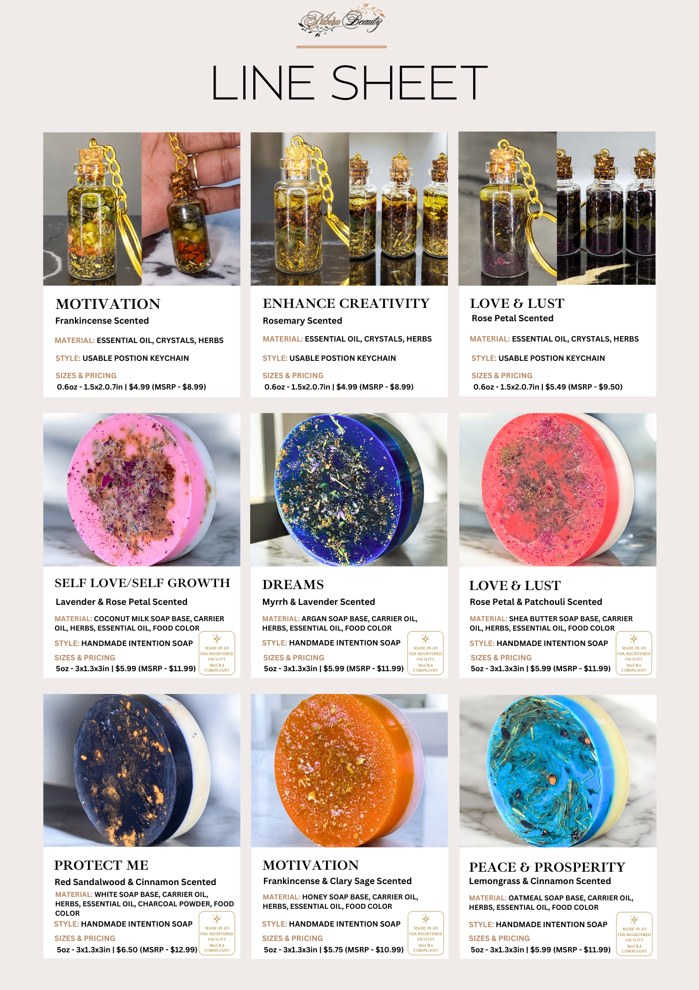 FDA-registered handmade soaps, candles & crystal keychains crafted with intention