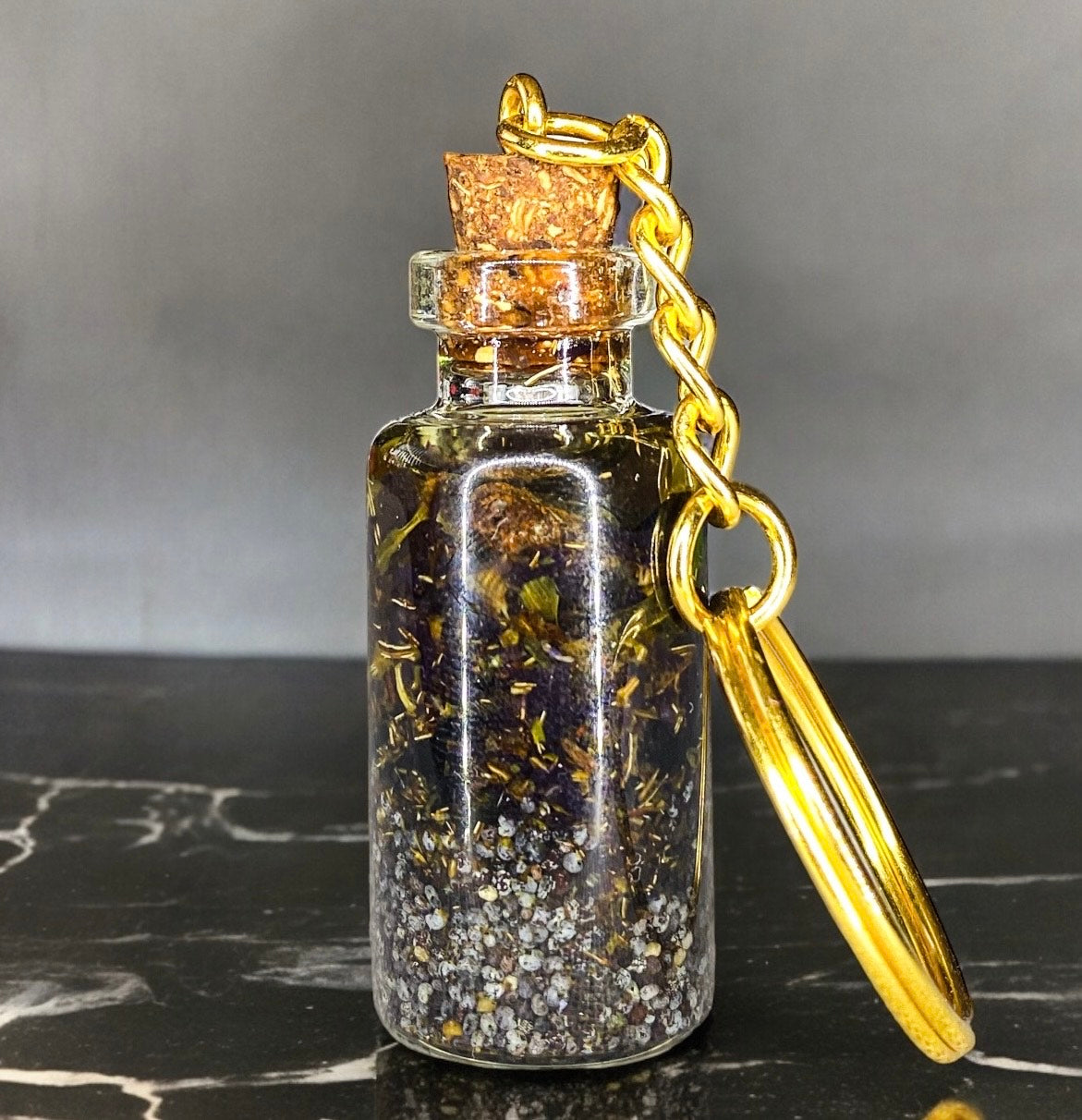 Size: Approx. 2 in. glass vial with stainless steel keyring • Handmade in USA
