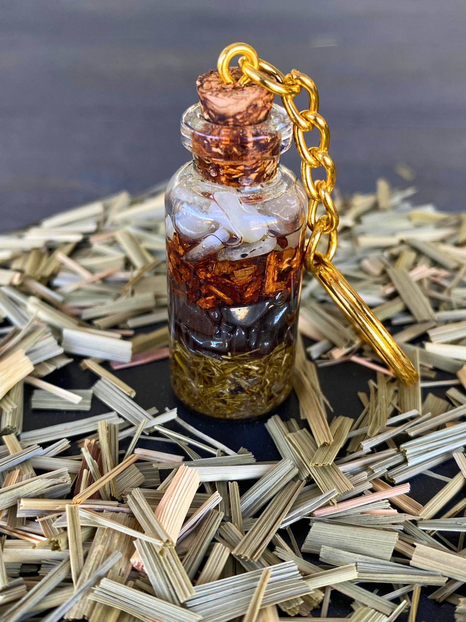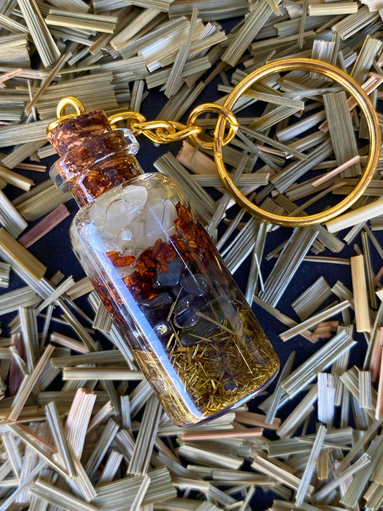 Size: Approx. 2 in. glass vial with stainless steel keyring • Handmade in USA