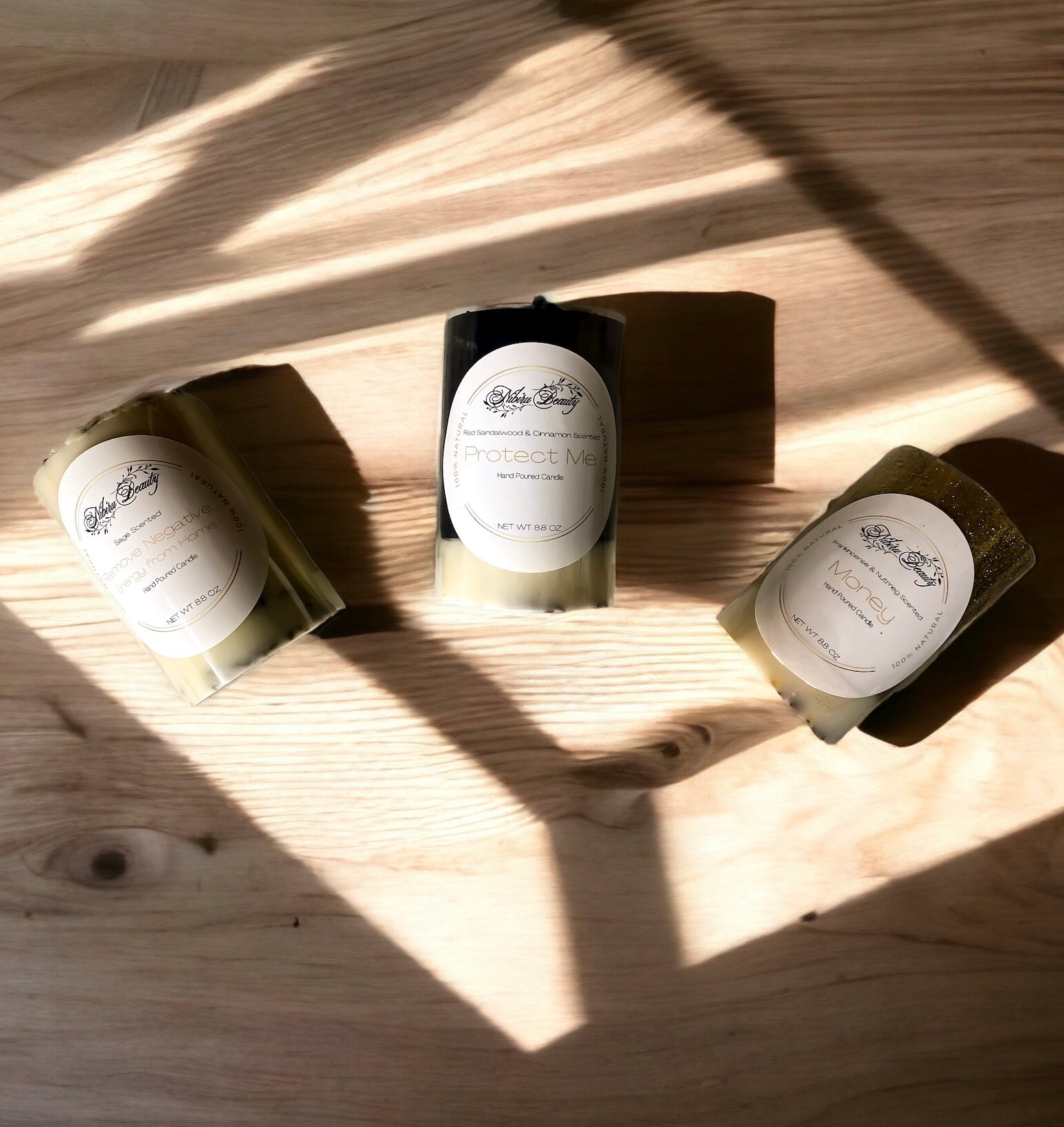 Cleanse your space with the Remove Negative Energy From Home Candle, a palm wax candle infused with white willow bark, rosemary herb, clear quartz, aventurine, and essential oils of rosemary & white tea.